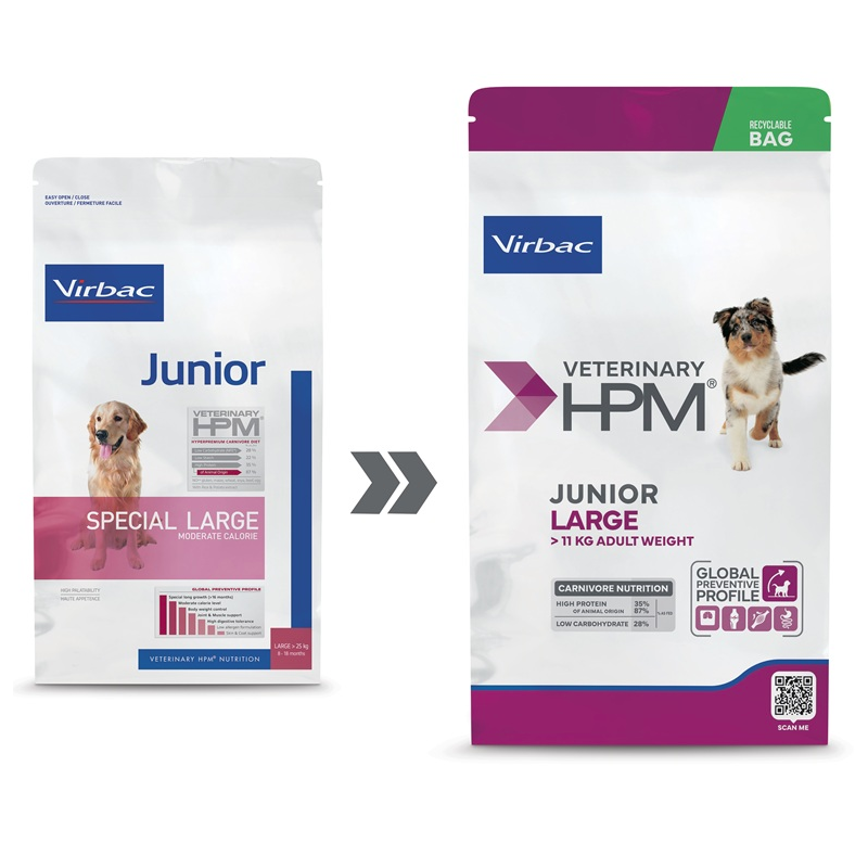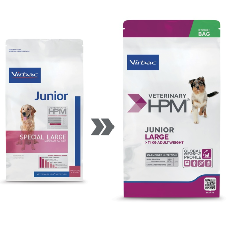Junior Dog Special Large est une alimentation complète et équilibrée pour jeune chien conçue pour maintenir une composition corporelle optimale après le pic de croissance.