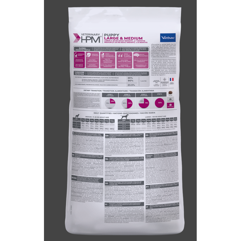 Baby Dog Large & Medium est une alimentation équilibrée pour chiot qui répond aux besoins intenses en énergie, protéines et minéraux du chiot de taille moyenne ou grande. Idéal pour leur croissance.