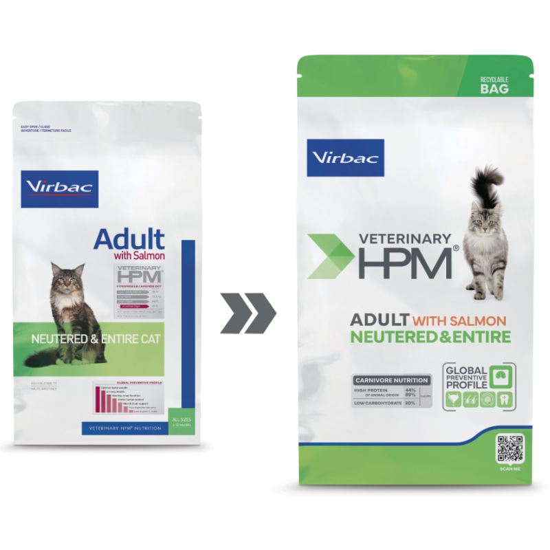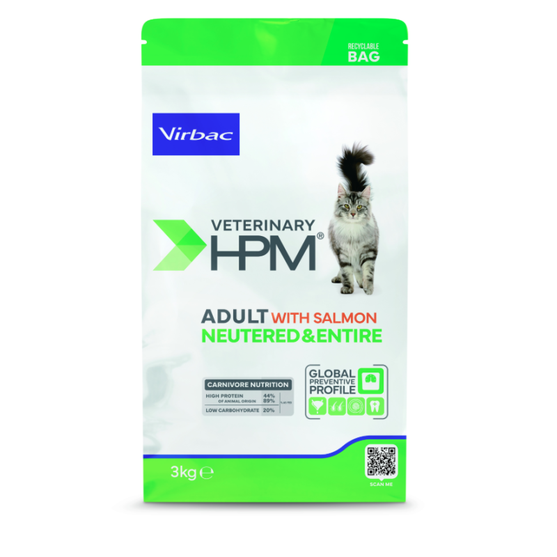 VIRBAC Adult Neutered & Entire Cat Saumon est un aliment complet et nutritif pour chat adulte sédentaire, qu'il soit stérilisé ou non.