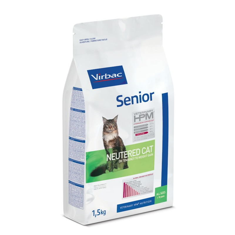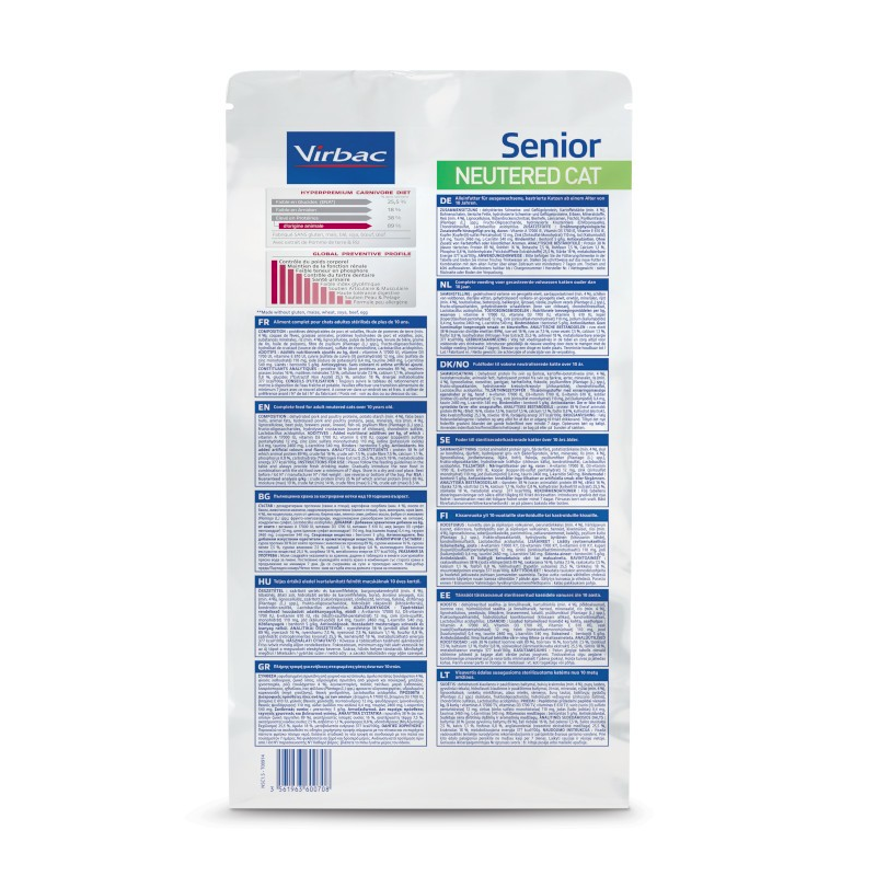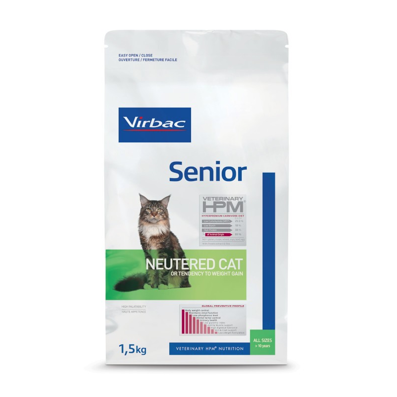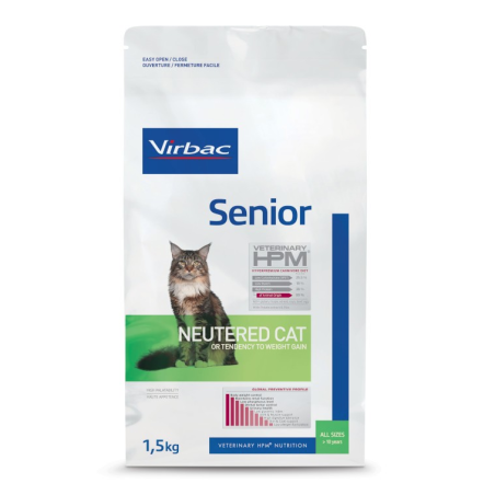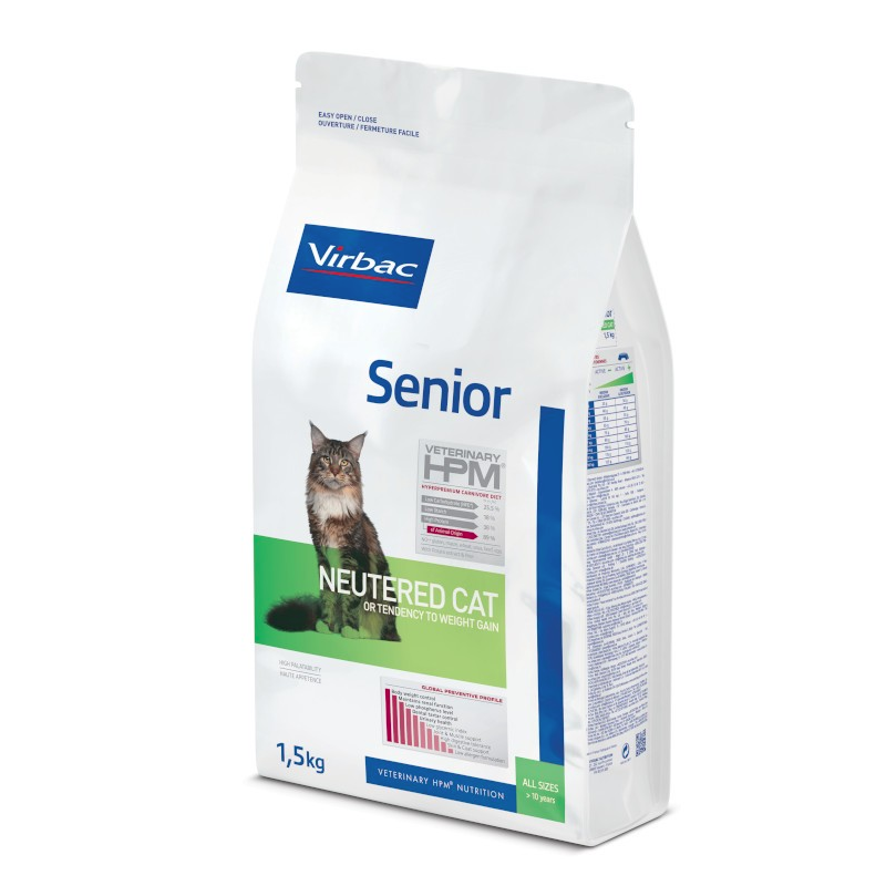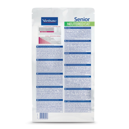 VIRBAC Senior Neutered Cat est un aliment complet et équilibré qui protège les grandes fonctions de votre chat senior contre les mécanismes de vieillissement cellulaire intensifiés par l'âge.