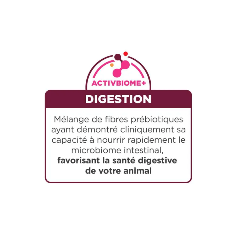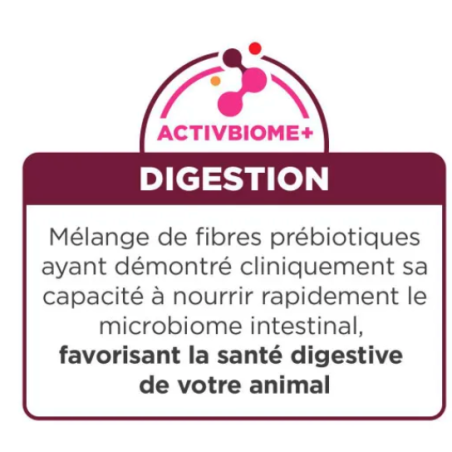 Prebiotische mix ActivBiome+ Digestion (4%): gemalen pecannootschillen, gedroogde bietenpulp, lijnzaad, gedroogde citruspulp, gedroogde cranberries.