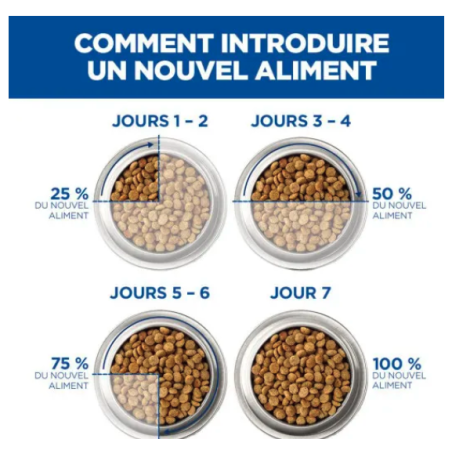 Hoog verteerbare ingrediënten: rijstbreuk, volkorenrijst, gedehydrateerde kip- en kalkoenproteïnen, eipoeder, maïs, hydrolysaat, dierlijke vetten, maïseiwitmeel, visolie.