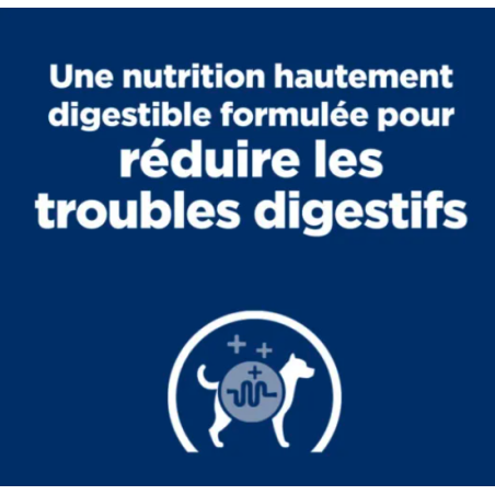 Volledig dieetvoer, hoog verteerbaar, speciaal ontwikkeld om de opnameproblemen in de darmen te verminderen en de slechte spijsvertering en exocriene pancreasinsufficiëntie bij pups te compenseren. Dit voer bevat een hoog natrium- en kaliumgehalte en ingrediënten die makkelijk verteerbaar zijn.