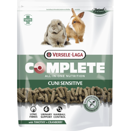 Versele Laga Complete Cuni Sensitive is speciaal ontwikkeld voor gevoelige konijnen en dwergkonijnen. De alles-in-één granulés voorkomen selectief eten en zorgen voor een uitgebalanceerde toevoer van essentiële voedingsstoffen.